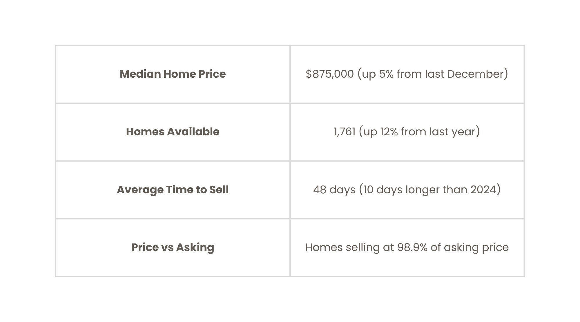 For 2025, the median home price landed at $870,000—up from $860,000 in 2024. That's about 1% growth compared to the 4-16% jumps we saw in previous years. The market is maturing.